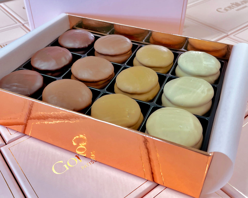 Elevate your gift-giving with the Gorditas 12-Pack Alfajores, a decadent marriage of Argentine tradition and Irish artisanal baking. Each alfajor is handcrafted in Ireland using a soft, melt-in-your-mouth shortbread-style biscuit, filled with luscious Argentine dulce de leche, and finished with either a dusting of powdered sugar or a rich chocolate coating.